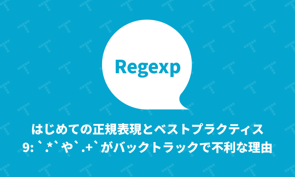 更新情報 2019/04/19: 初版公開 2026/02/16: タイトルと目次を更新 1: 基本となる8つの正規表現 2: 正規表現とは何か/ワイルドカードとの違い 3: 冒頭/末尾にマッチするメタ文字とセキュリティ、文字セットの否定と範囲 4: 先読みと後読みを極める 5(特別編)|と部分マッチのワナ 6: 文字セットのショートハンド 7: Unicode文字ポイントとUnicode文字クラス 8: 対象の構造を意識した「適度にDRYな」書き方 9: .*や.+がバックトラックで不利な理由(本記事) 10: 危険な「Catastrophic Backtracking」 主にRubyを中心としながらも、なるべ … 続きを読む はじめての正規表現とベストプラクティス9: `.*`や`.+`がバックトラックで不利な理由