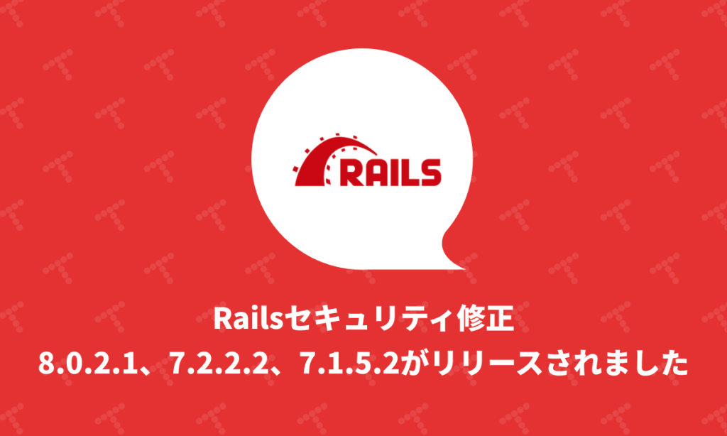 Railsセキュリティ修正8.0.2.1、7.2.2.2、7.1.5.2がリリースされました