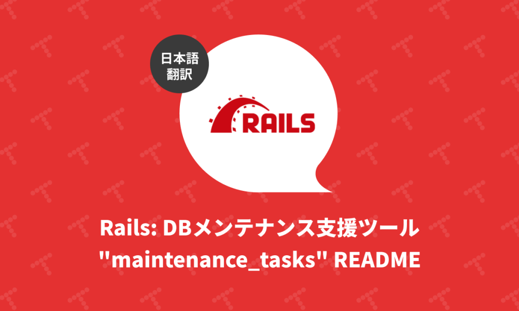 概要 MITライセンスに基づいて翻訳・公開いたします。 英語記事: Shopify/maintenance_tasks: A Rails engine for queueing and managing data migrations. 原文更新日: 2025/10/25(4bda0aa) ライセンス: MIT 本記事では、原則としてツール(gem、フレームワーク)の名前をmaintenance_tasksと表記します。 Shopifyが開発したmaintenance_tasksは、Railsガイドでも推奨されているDBのデータマイグレーション用gemです↓。 参考: 10.2 データのマイグレーション -- A … 続きを読む Rails: DBメンテナンス支援ツール "maintenance_tasks" README(翻訳)