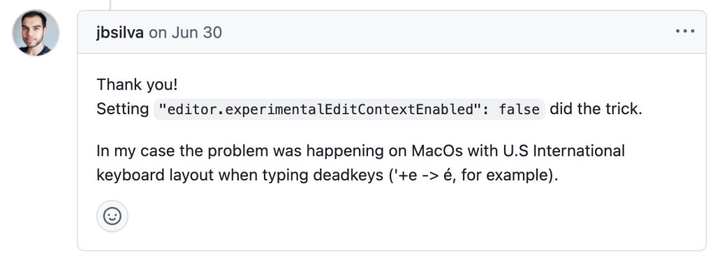 この1か月ほど、上述の「変換した文言が2回入力されることがある」「変換した文言がさらにCopilotオートコンプリートと衝突して日本語がぐちゃぐちゃになることがある」という問題がVS Codeで頻発して困っていました。