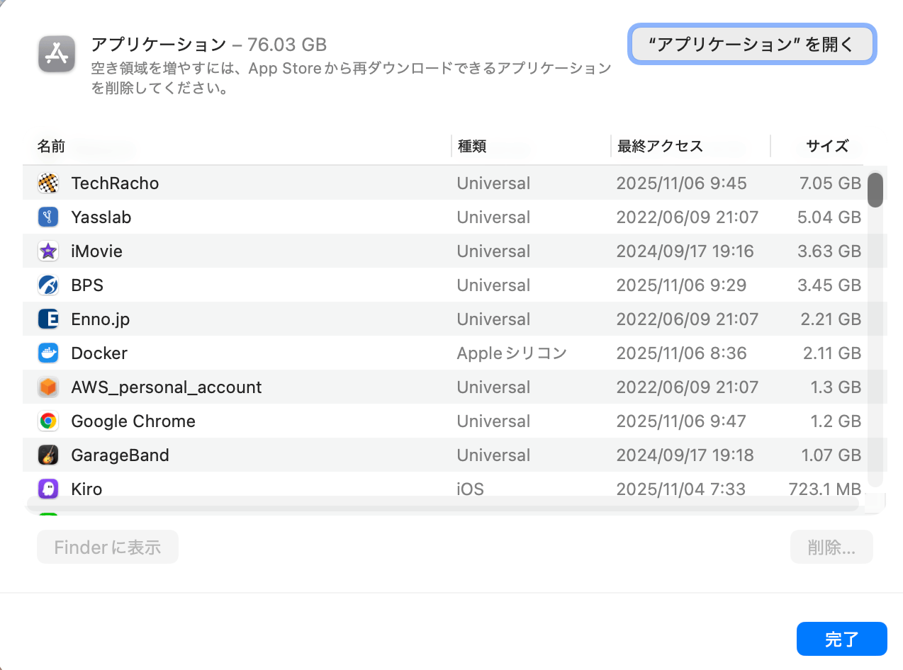 おかげで、30GBほどSSDの空き容量を増やせました🎉