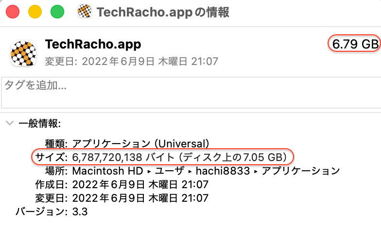 Coherence Xのアプリがユニバーサルバイナリだからファイル容量が倍になっているのかと思い、lipoコマンドでx86_64バイナリを削減したりもしましたが、それでもFinderや「情報を見る」のファイル容量が減りませんでした🤔