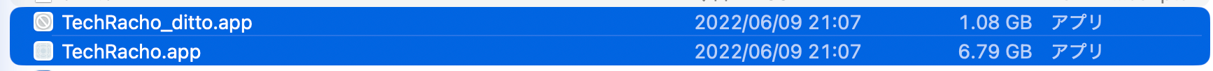 コピー後のファイルサイズは、見事にdu -shと一致するようになりました。後はコピー前のアプリを捨てて削除し、コピー後のファイルをリネームするだけです。