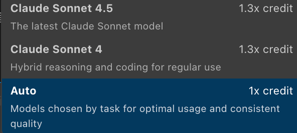 Claude の少し前のLLMを使っているせいなのか、レスポンスも速いのが特徴です。想像ですが、最新のLLMはアクセスが集中して遅くなりがちなので、あえてそうしているのかもしれません。なお、モデルの選定はAutoが推奨されているだけあって、モデルを手動で選んでも期待通りになるとは限らないようです。