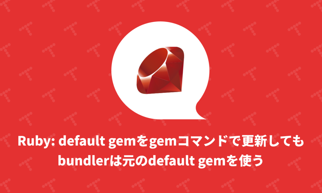 🔗 概要 以下のように、default gemsであるRubyのopensslをgem update opensslコマンドで更新したとします。 一方、bundlerを使うRubyアプリ(ここではRails)ではopensslをインストールしていないとします。 $ gem list|rg openssl openssl (3.3.2, default: 3.3.0) $ bundle list|rg openssl # 表示なし この場合、bundlerを使うRubyアプリでは新しいopenssl 3.3.2が使われると思いきや、何とデフォルトの3.3.0が使われるのです。 このような状態でRailsでopens … 続きを読む Ruby: default gemをgemコマンドで更新してもbundlerは元のdefault gemを使う