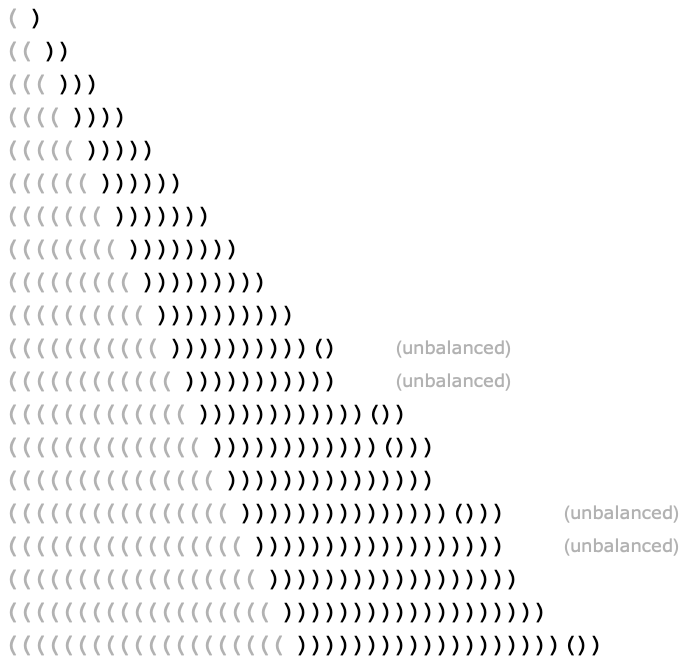 - 原注: ちなみに現時点の完全なChatGPTですら、丸かっこの長いシーケンスの開きと閉じを正しく対応付けるのに苦労しています。 ↩