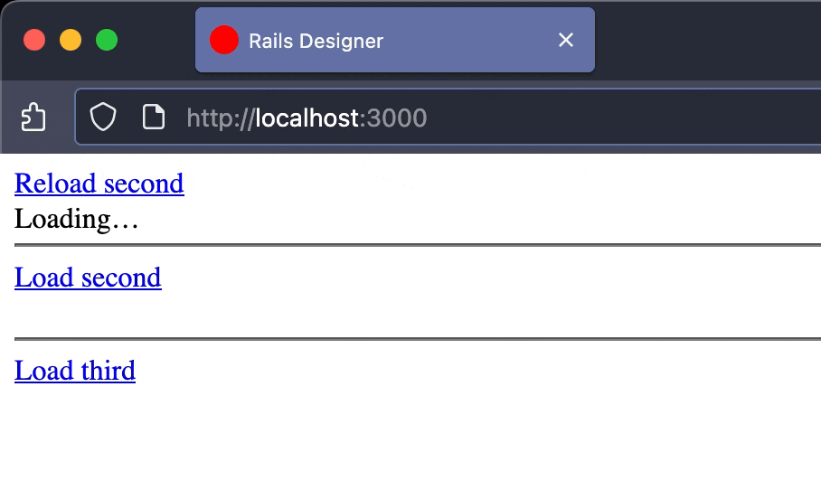 デフォルトのTurbo Frameは、ページを最初に表示したときの「読み込み中」ステート表示をシンプルな方法で処理します。