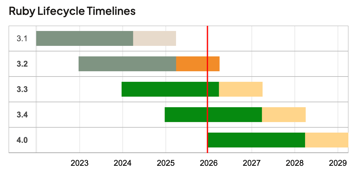 - Ruby 3.2: 2026年3月いっぱいでメンテナンス終了(予定)