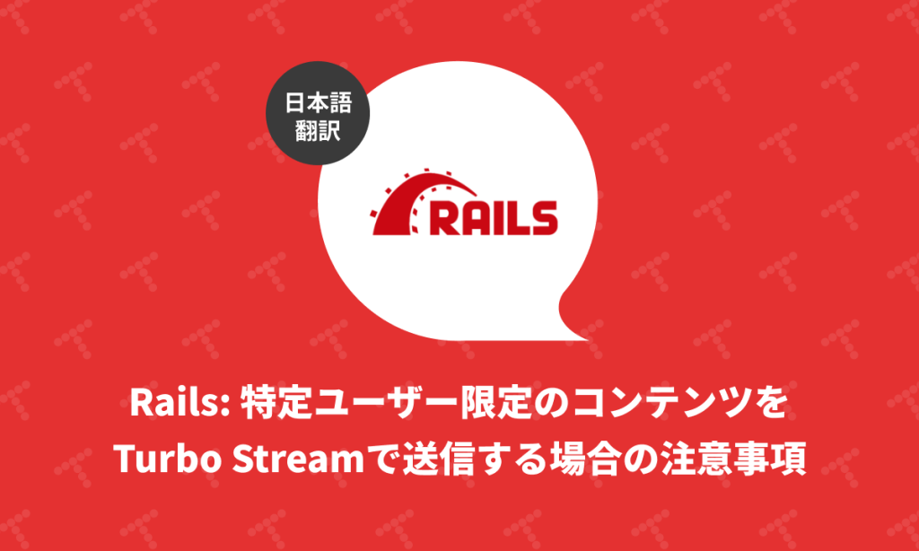 概要 元サイトの許諾を得て翻訳・公開いたします。 英語記事: User-Specific Content in Turbo Stream Partials | Rails Designer 原文公開日: 2025/08/21 原著者: Rails Designer -- Railsフロントエンド関連記事に加えて、ViewComponentとTailwind CSSを用いた美しいUIコンポーネントを販売しています 日本語タイトルは内容に即したものにしました。 Rails: 特定ユーザー限定のコンテンツをTurbo Streamで送信する場合の注意事項(翻訳) 特定ユーザーを対象としてパーシャルに送信したコンテンツを … 続きを読む Rails: 特定ユーザー限定のコンテンツをTurbo Streamで送信する場合の注意事項(翻訳)
