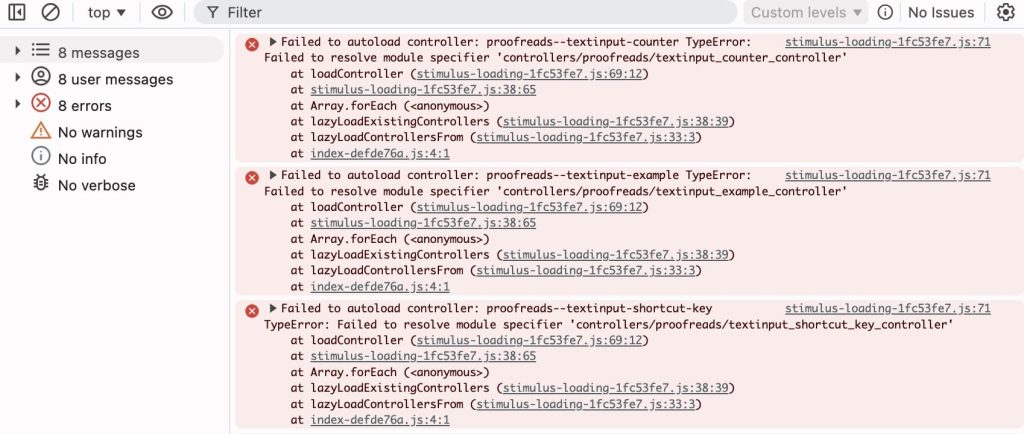 その代わり、現時点ではDevToolsのコンソールにコントローラの数だけエラーが表示されてしまいます(害はありませんが)。