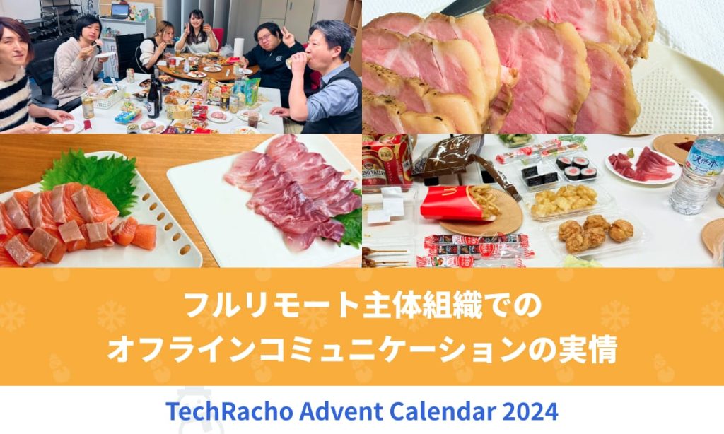 morimorihogeです。もう12月かという気持ちです。11月あっという間だったので師走はもっと早いのか💦 今年もTechRachoではBPS株式会社のメンバーとご一緒に仕事させて頂いている近しい皆さまの参加するアドベントカレンダー記事を投稿していきます。 普段記事執筆する機会が無い人にも年に1-2回くらいはアウトプットしてもらう機会を作ろうという企画ですので、いつもと少し違うTechRachoをお楽しみください。 アドベントカレンダー初日ということで、僕からは社内でのオフラインコミュニケーションについて書いてみたいと思います。 弊社のリモートワークの現状 リモートワークを導入している会社数も減っていると聞き … 続きを読む フルリモート主体組織でのオフラインコミュニケーションの実情