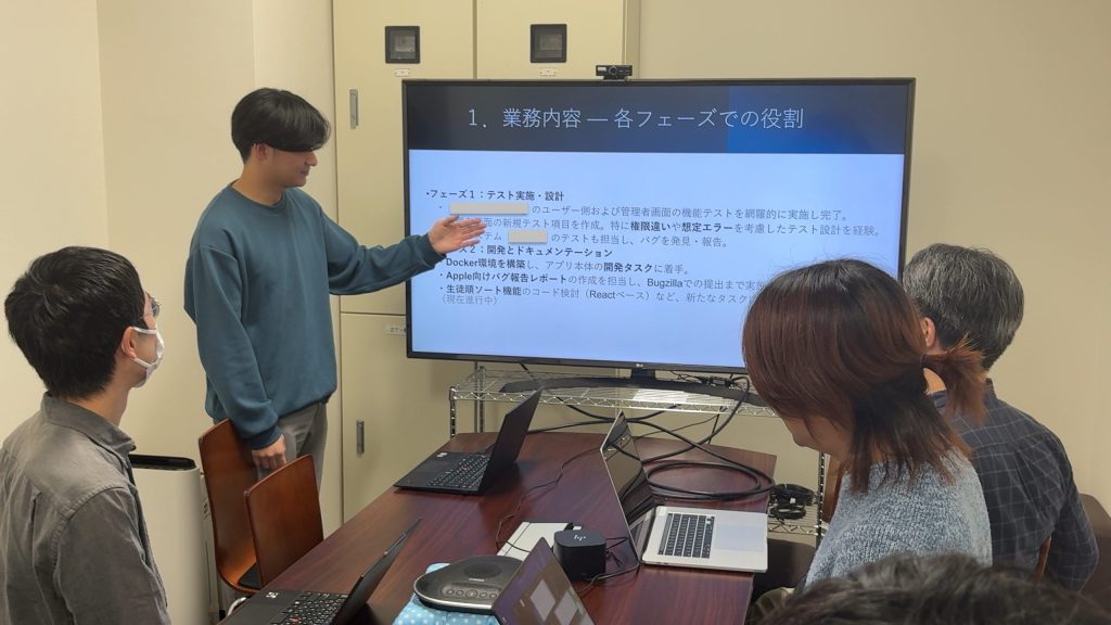 インターン初期は、開発中の新製品のアプリテストを中心に取り組んでもらいました。